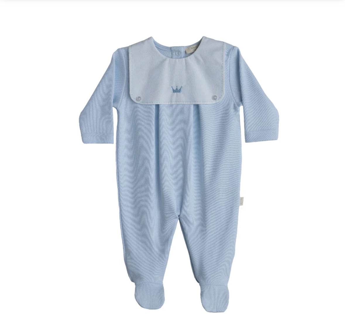 Pale blue crown design baby grow