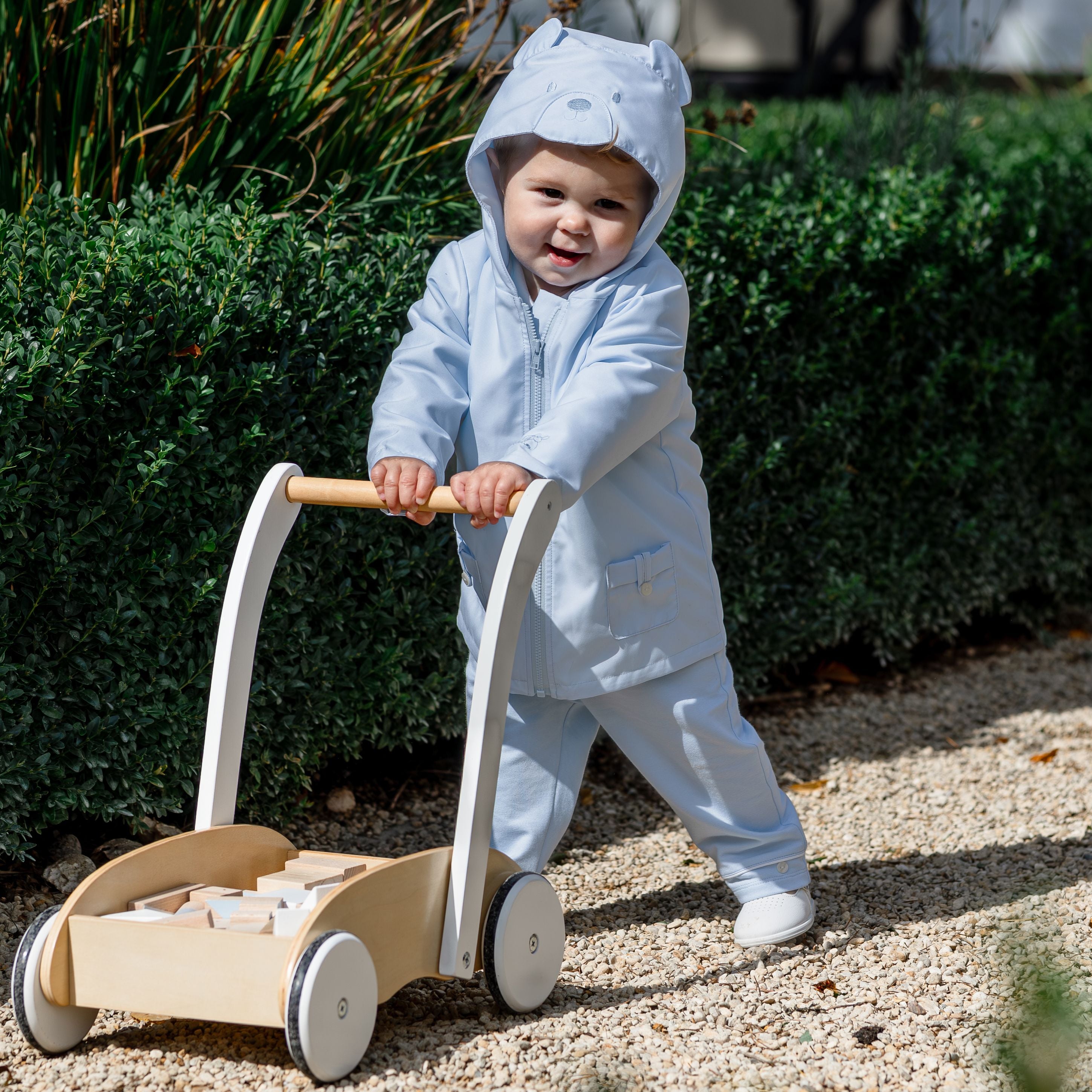 Boys Pale Blue Microfibre Bear Jacket with Embroidered Hood and Ears
