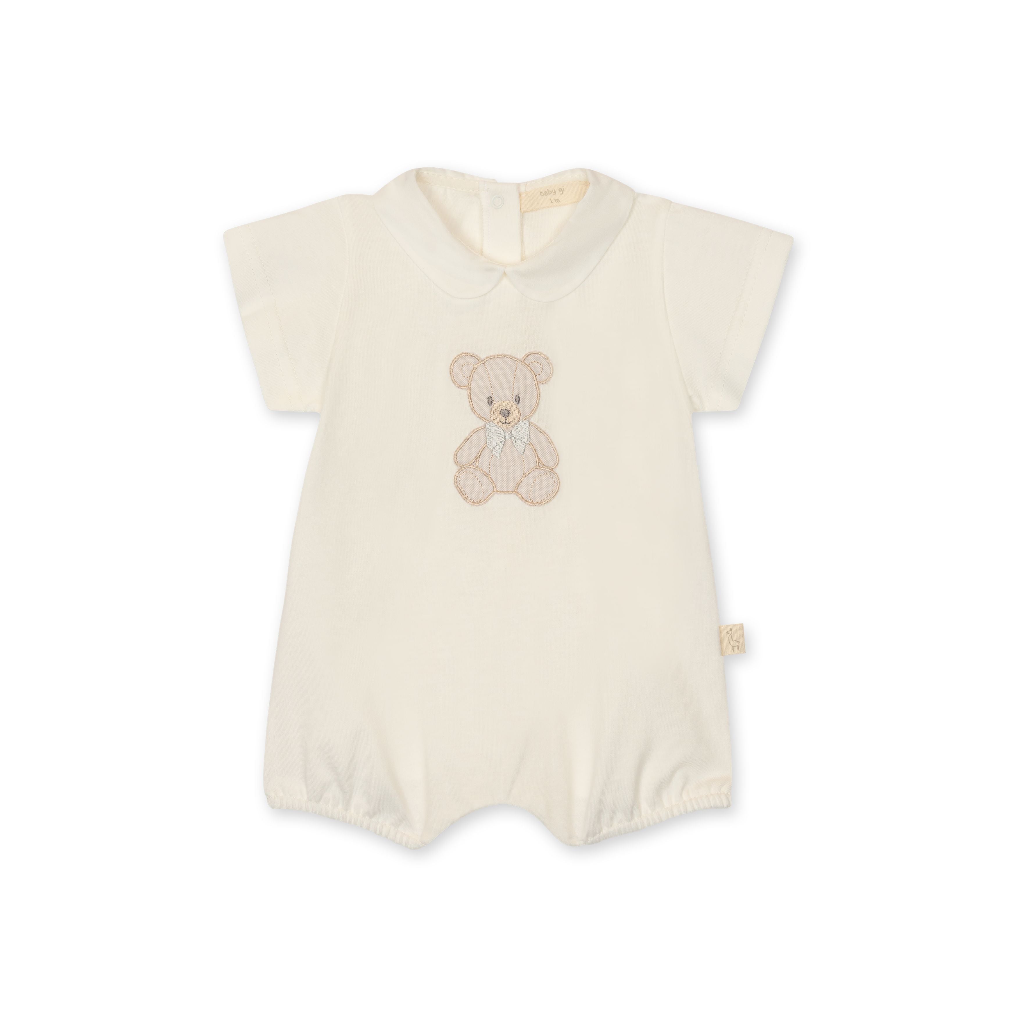 Baby Gi Ivory Teddy Romper SS26 - is backordered and will ship as soon as it is back in stock.