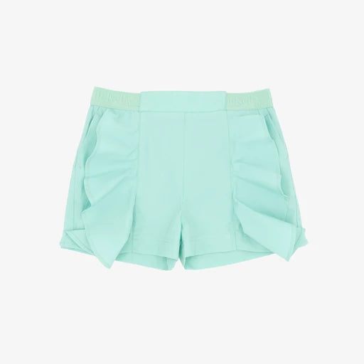 Frilled Green Shorts With High Elastic Waist.