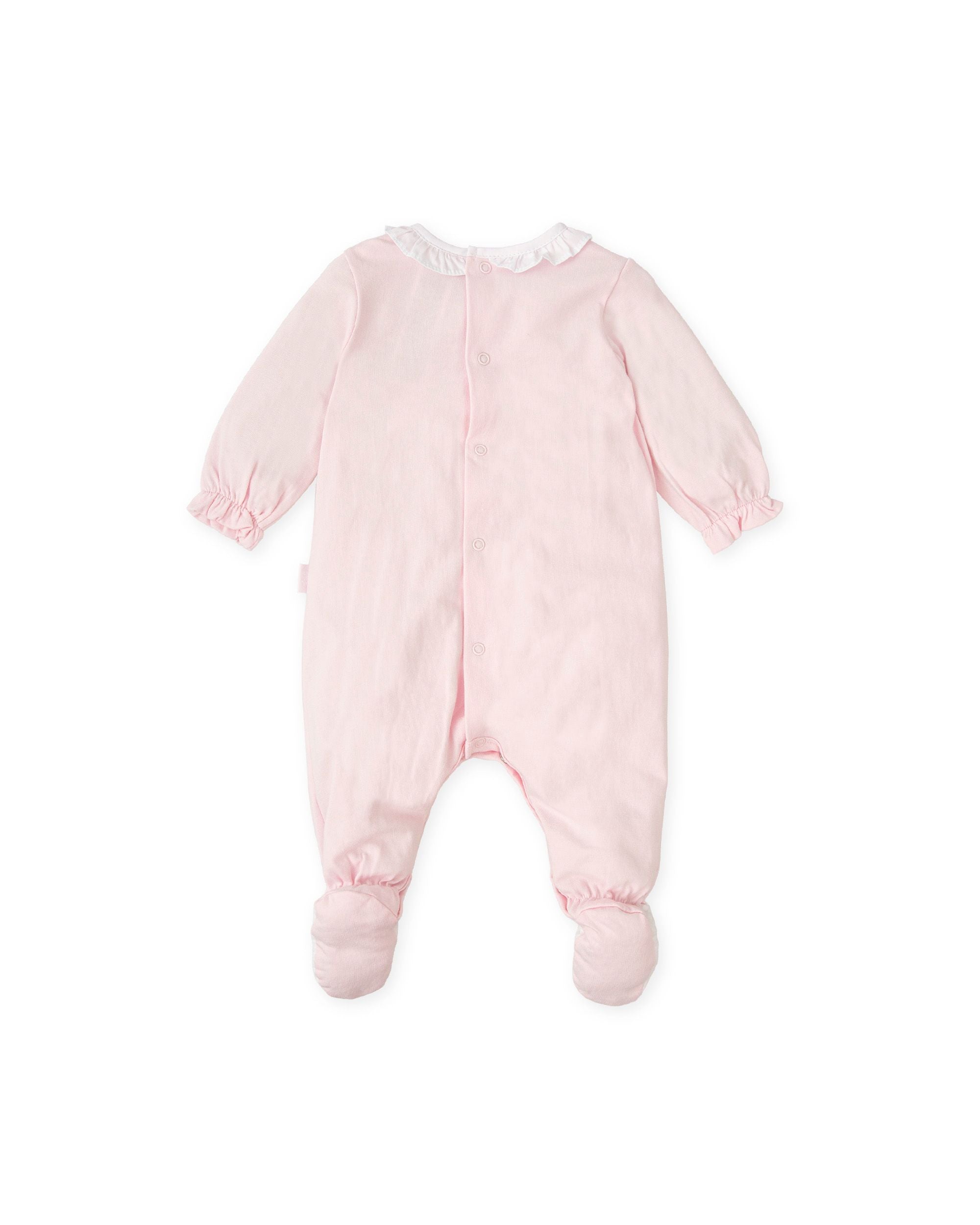 Girls Pink Babygrow With white Frilled Collar.