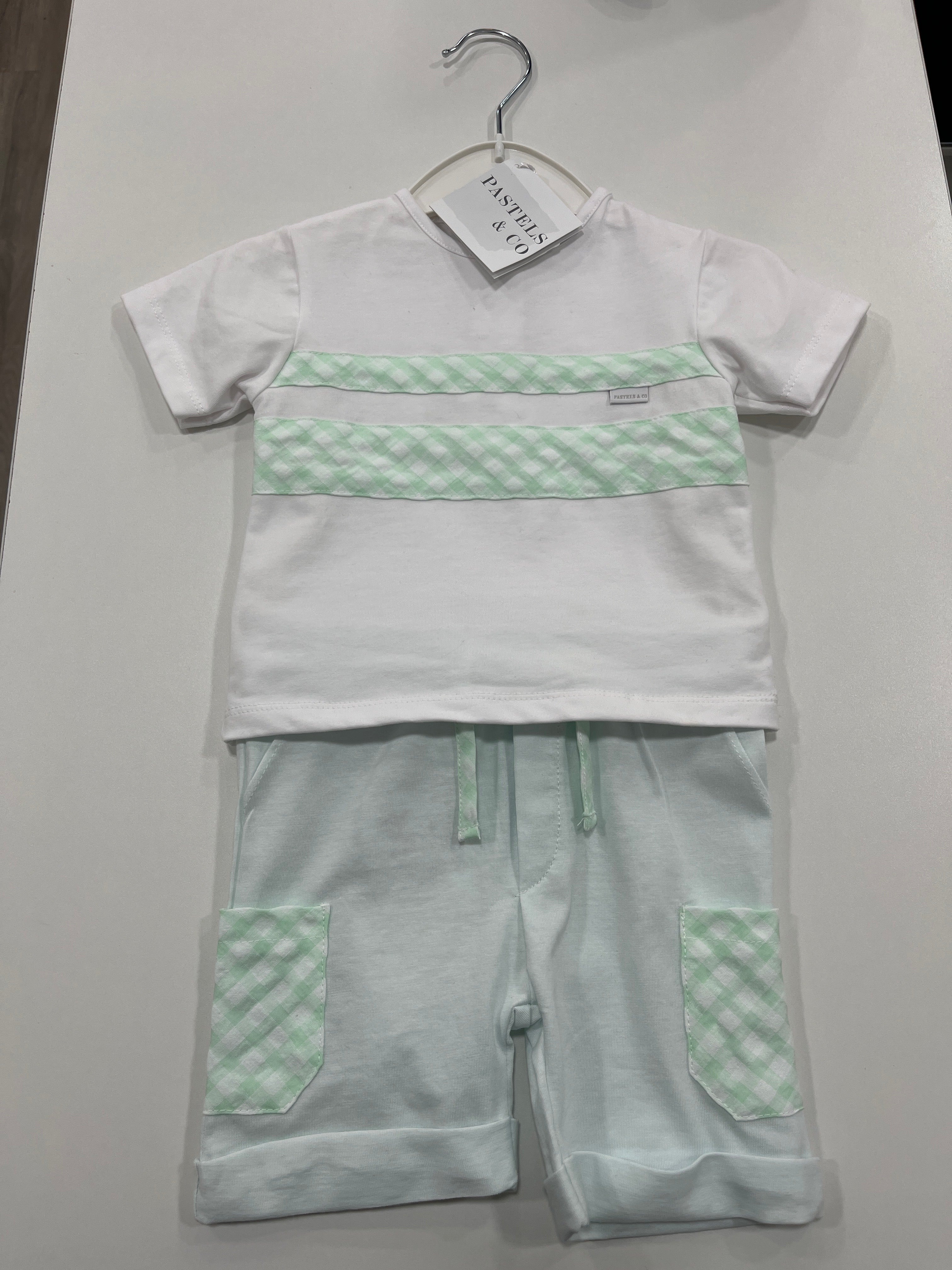 Pastels & Co Boys Mint Green Gingham Short Set SS26 Reggie - is backordered and will ship as soon as it is back in stock.