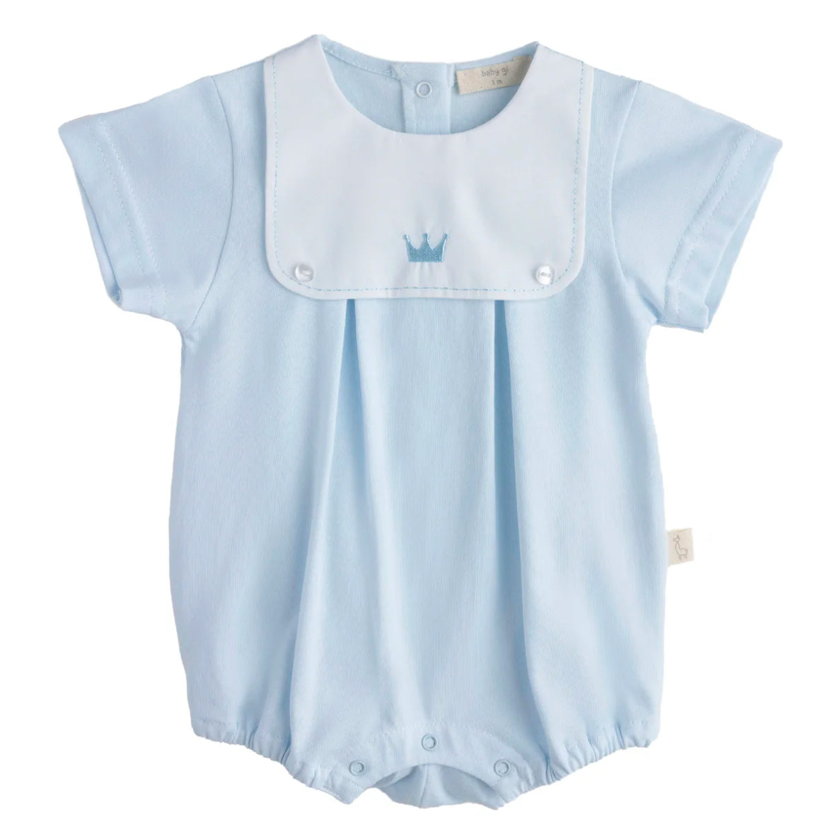 Baby Gi Boys Crown Blue Romper SS26 - is backordered and will ship as soon as it is back in stock.