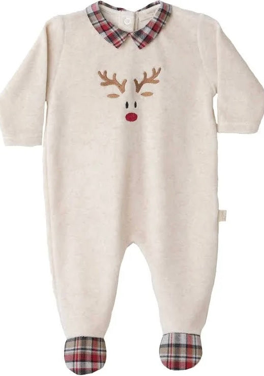 Baby Gi Boys Velour Reindeer Beige / Red Baby grow AW