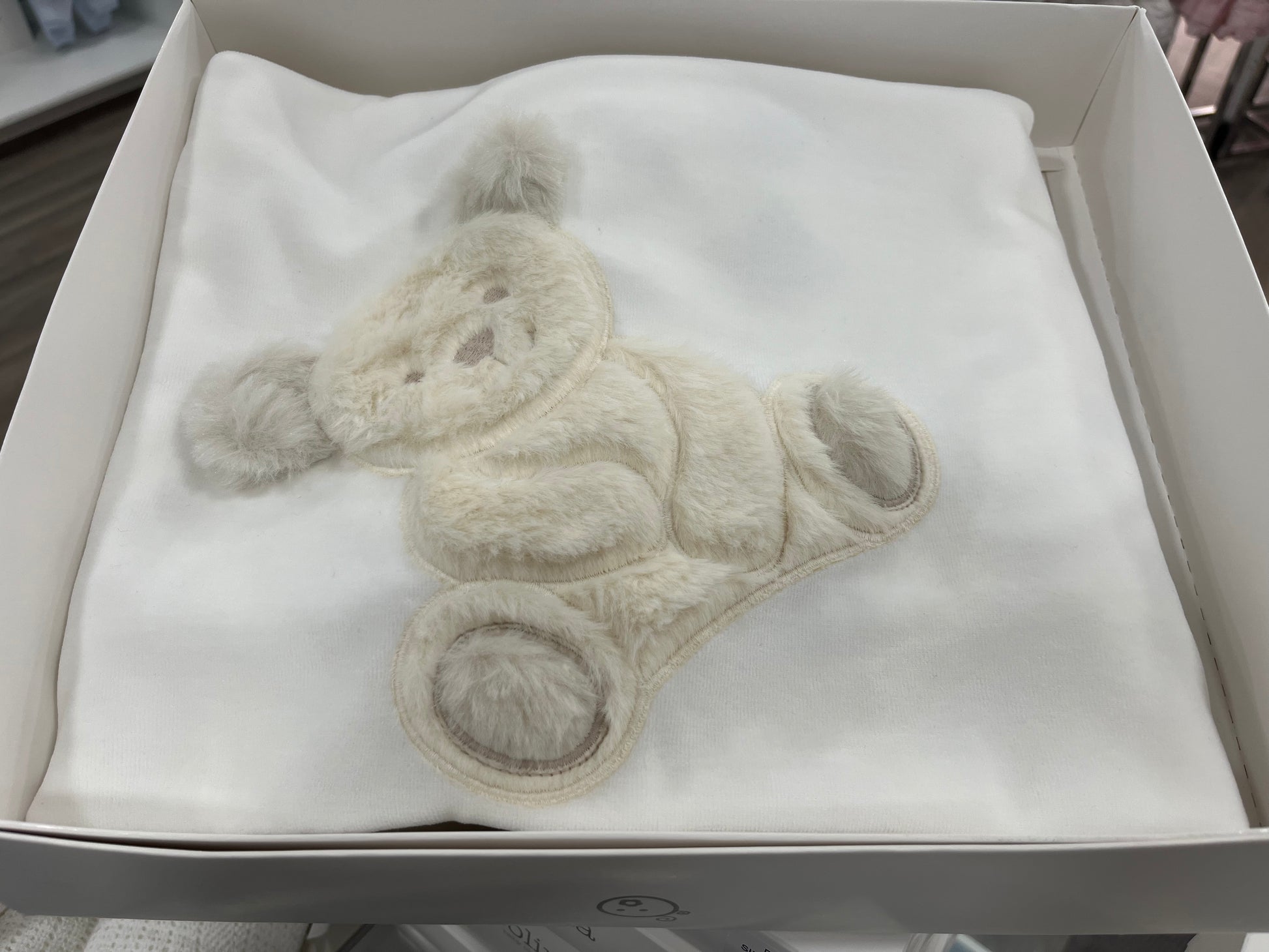 Soft Velour Baby Blanket With Teddy Design in Neutral Colours. Boxed